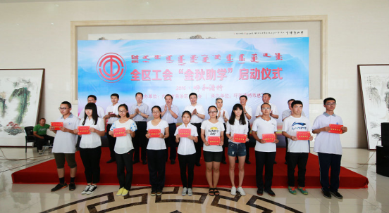 8月5日上午,自治區、呼市兩級工會舉行2016年金秋助學啟動儀式,幫助家庭困難品學兼優的學生圓大學夢。我公司受助員工劉曉伍同志和女兒劉焱同學參加了儀式。