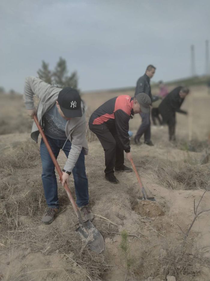 榆林鎮蘇木沁村,大家興致勃勃地投入到植樹活動中。干勁十足,緊密配合,有的挖坑、有的扶苗、有的培土,各個環節銜接有序,心往一處想、勁往一處使,充分發揚了團結協作的精神。年輕同志經驗欠缺,前輩們就耐心指導,結對勞作。雖然泥土沾滿了褲腿,汗水濕透了衣背,但大家的臉上都寫滿了勞動的歡欣。機關黨支部此次共種植松樹200多棵。